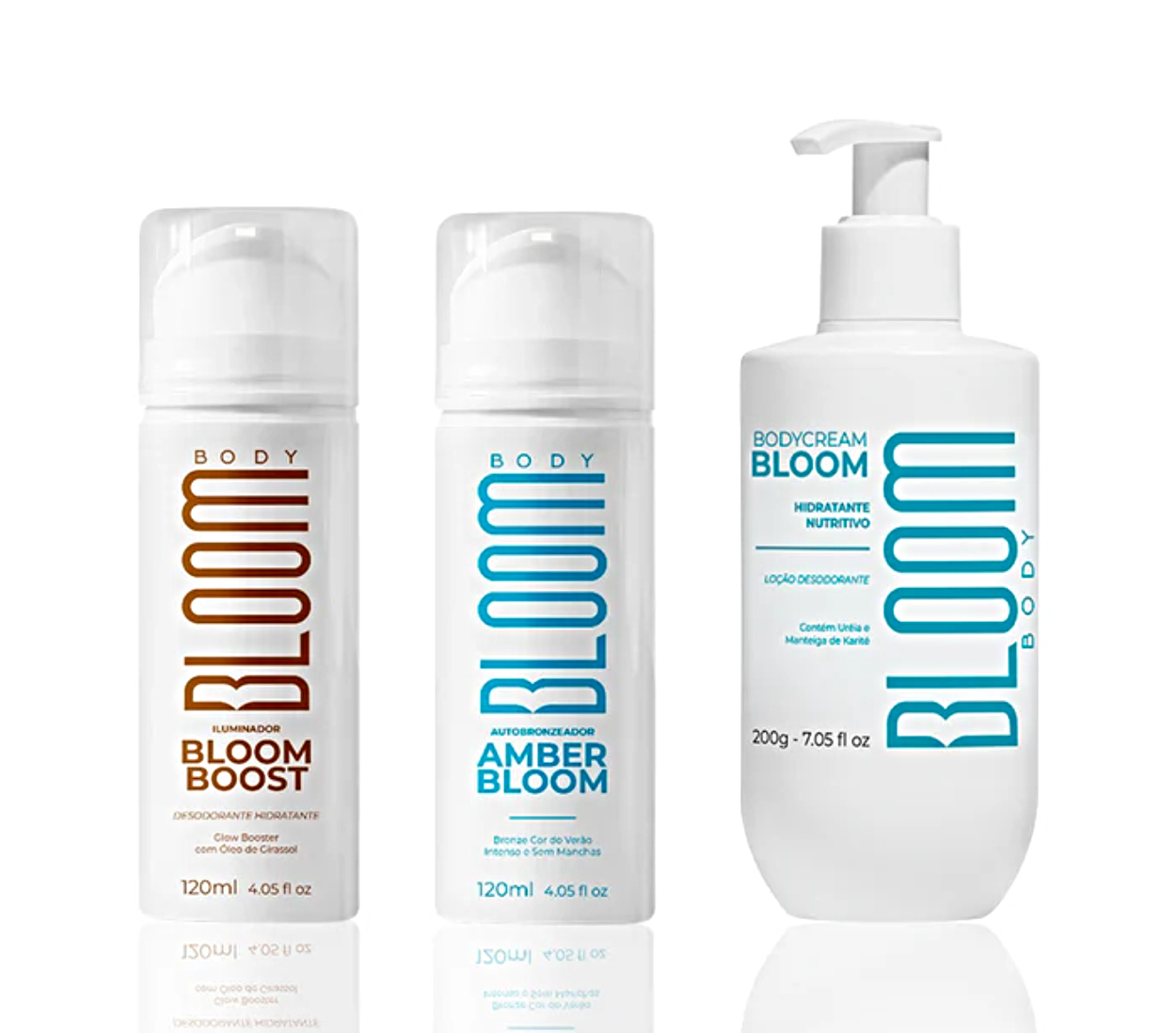 Kit Bloom Bronzeado Amber Bloom Autobronzeador 120ml+ Bloomboost Iluminador Hidratante 120ml+ Body Cream Hidratante Corporal Bloom 200ml