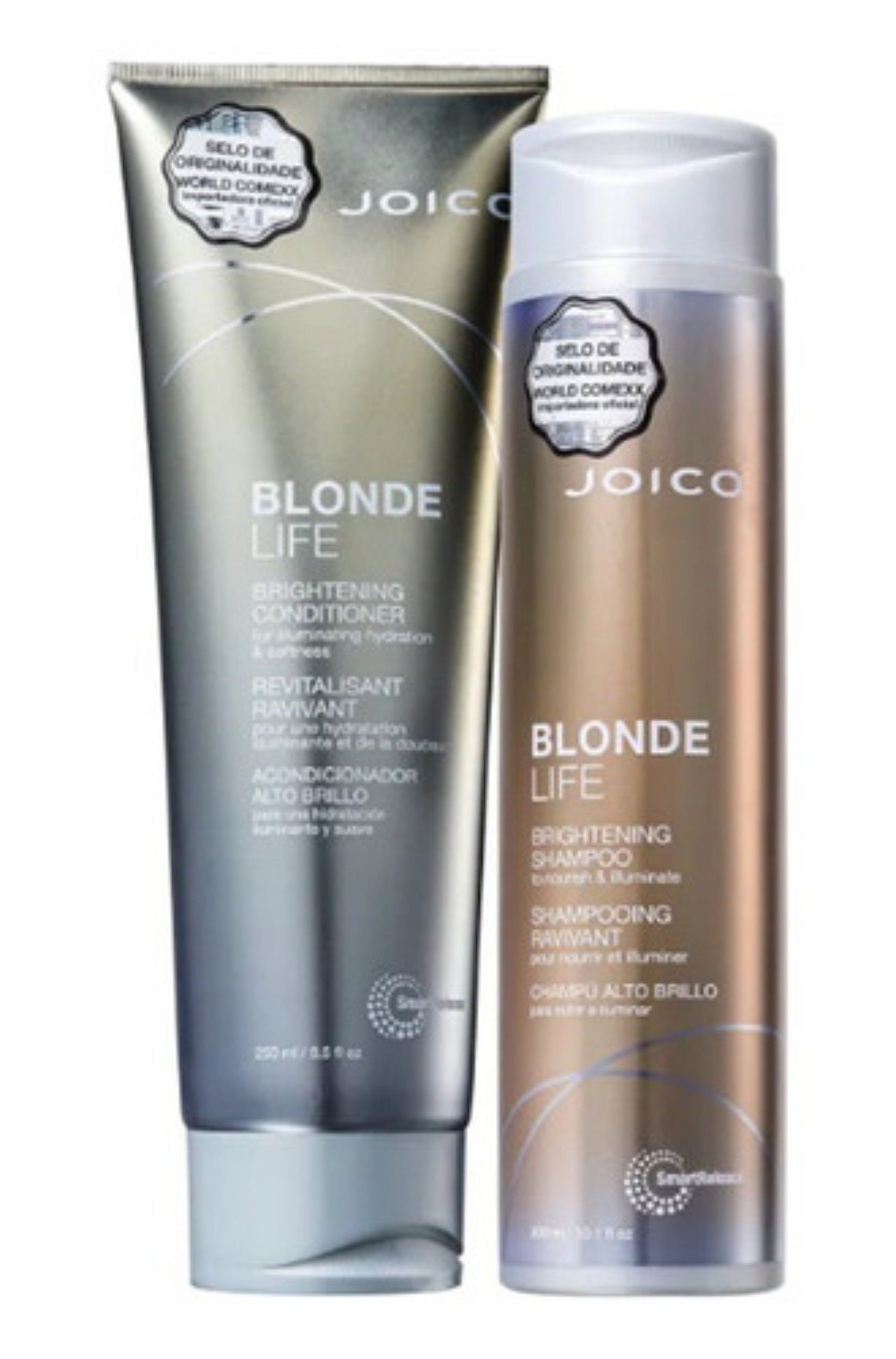 Kit Joico Blonde Life Shampoo 300mls+ Condicionador 250mls Kit de tratamento para cabelos loiros, limpa suavemente os fios e traz nutrição profunda e instantânea, proporcionando desembaraço, maciez e brilho extra. Oferece fórmula especialmente desenvolvida para garantir um loiro iluminado, cheio de vida e com a cor protegida. Contém *Joico Blonde Life- Shampoo 300ml: limpa suavemente, nutre e mantém o cabelo loiro bonito e brilhante. *Joico Blonde Life- Condicionador 250ml: hidrata, revitaliza e desembaraça instantaneamente, além de ajudar a repor a força, a maciez e brilho. Componentes *Óleos de Tamanu e Monoi: ricos em variados nutrientes que impedem que a cor desbote ou fique amarelada. Protegem contra danos. *Tecnologia Smart Release: sistema único de liberação de lipossomos, libera continuamente nos fios Óleo de Rosa Mosqueta, Arginina e Queratina para ajudar a reparar, alinhar e proteger os cabelos dos efeitos cumulativos do dia a dia.