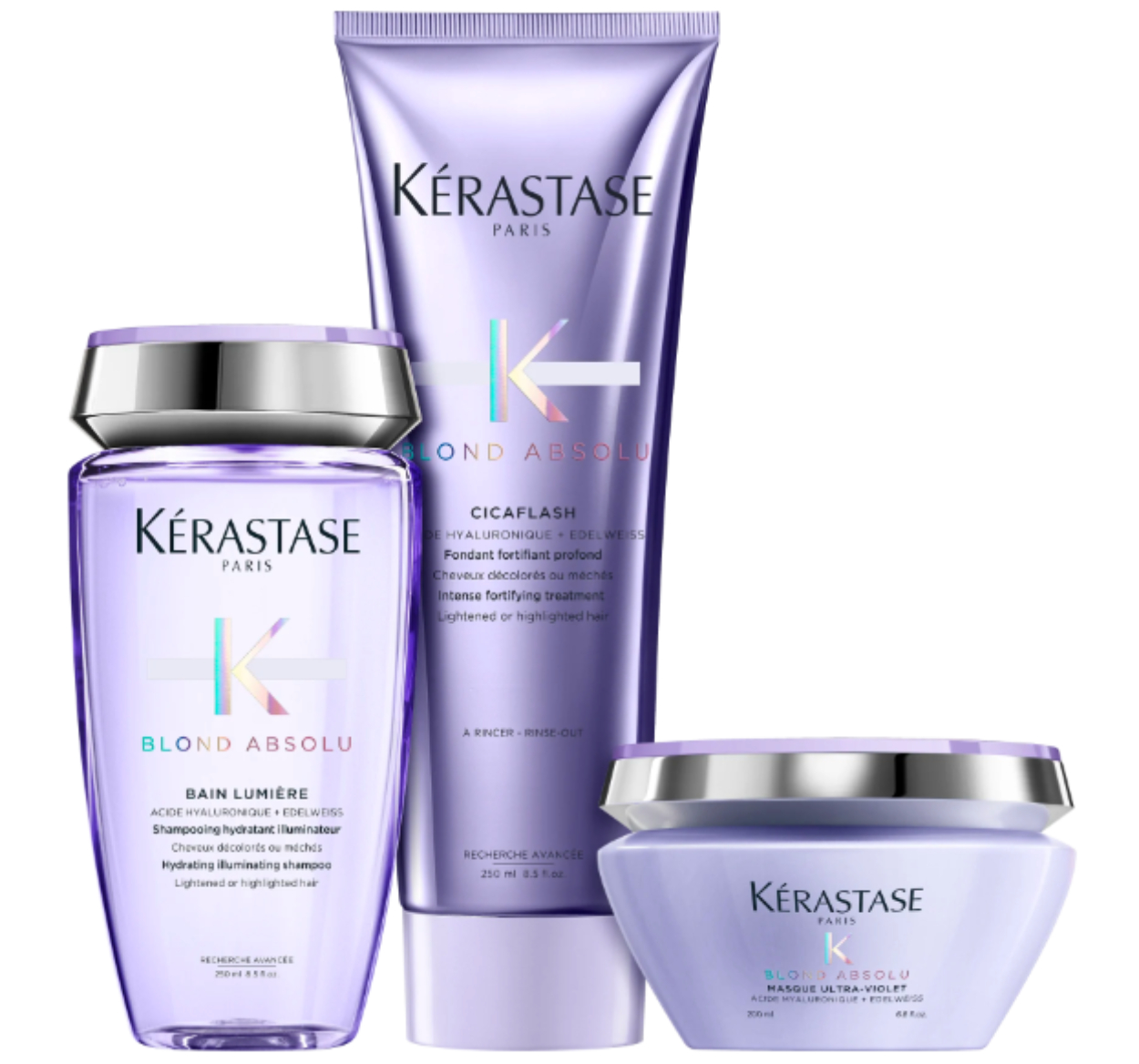 Kit Kérastase Blond Absolu Bain Lumiere 250ml + Cicaflash 250ml + Máscara Ultra-Violet 200gr: