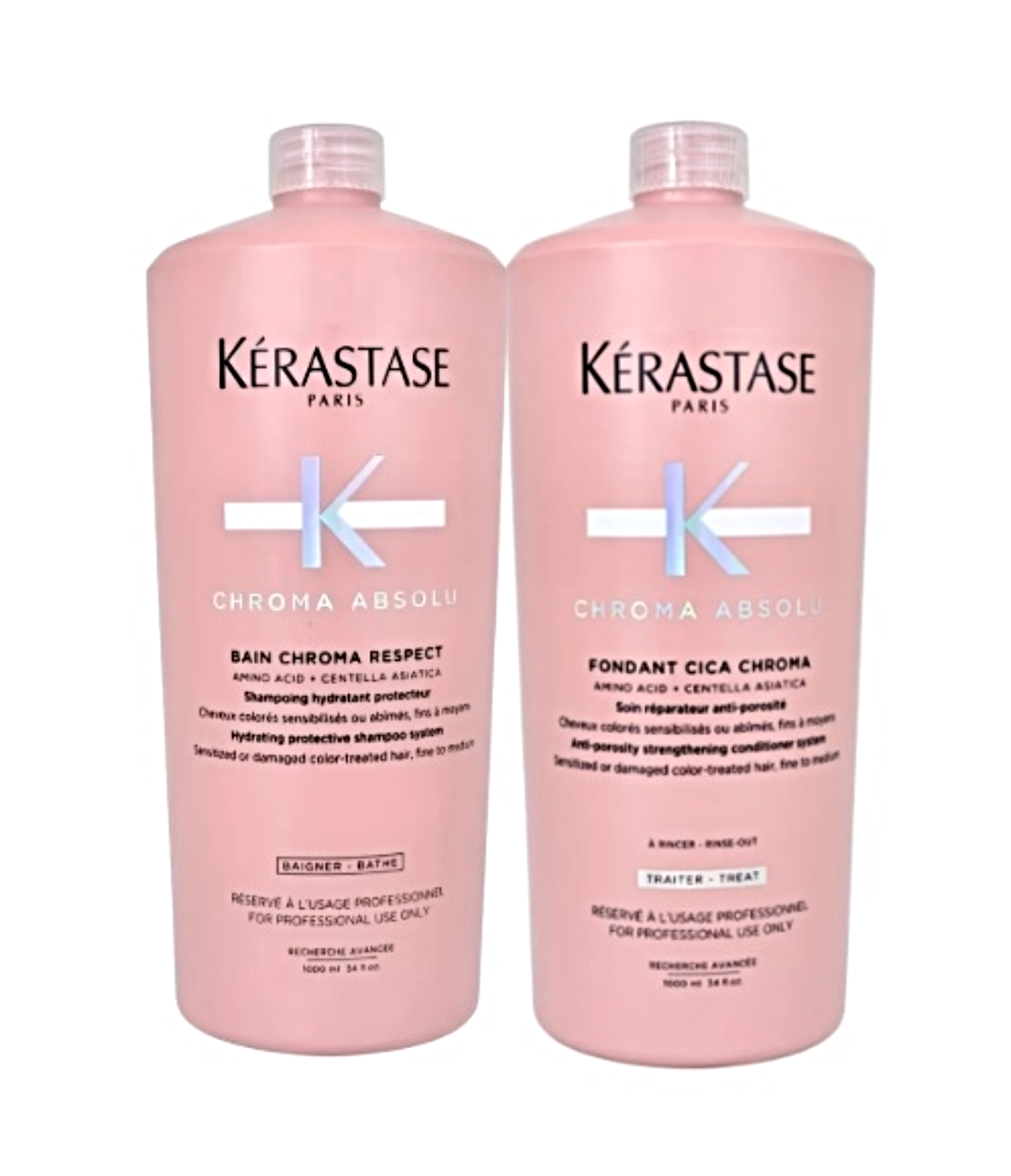 Kit Kérastase Bain Chroma Absolu Respect Shampoo+ Fondant Cica Chroma Absolu Condicionador 1000ml: