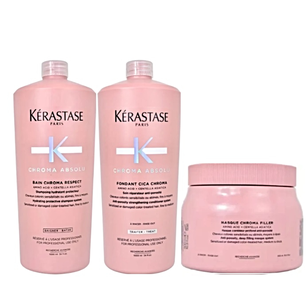 Kit Kérastase Chroma Absolu Bain Chroma Respect Shampoo 1000ml + Fondant Cica Chroma Absolu Condicionador 1000ml + Másque Chroma Absolu Filler Máscara 500g: