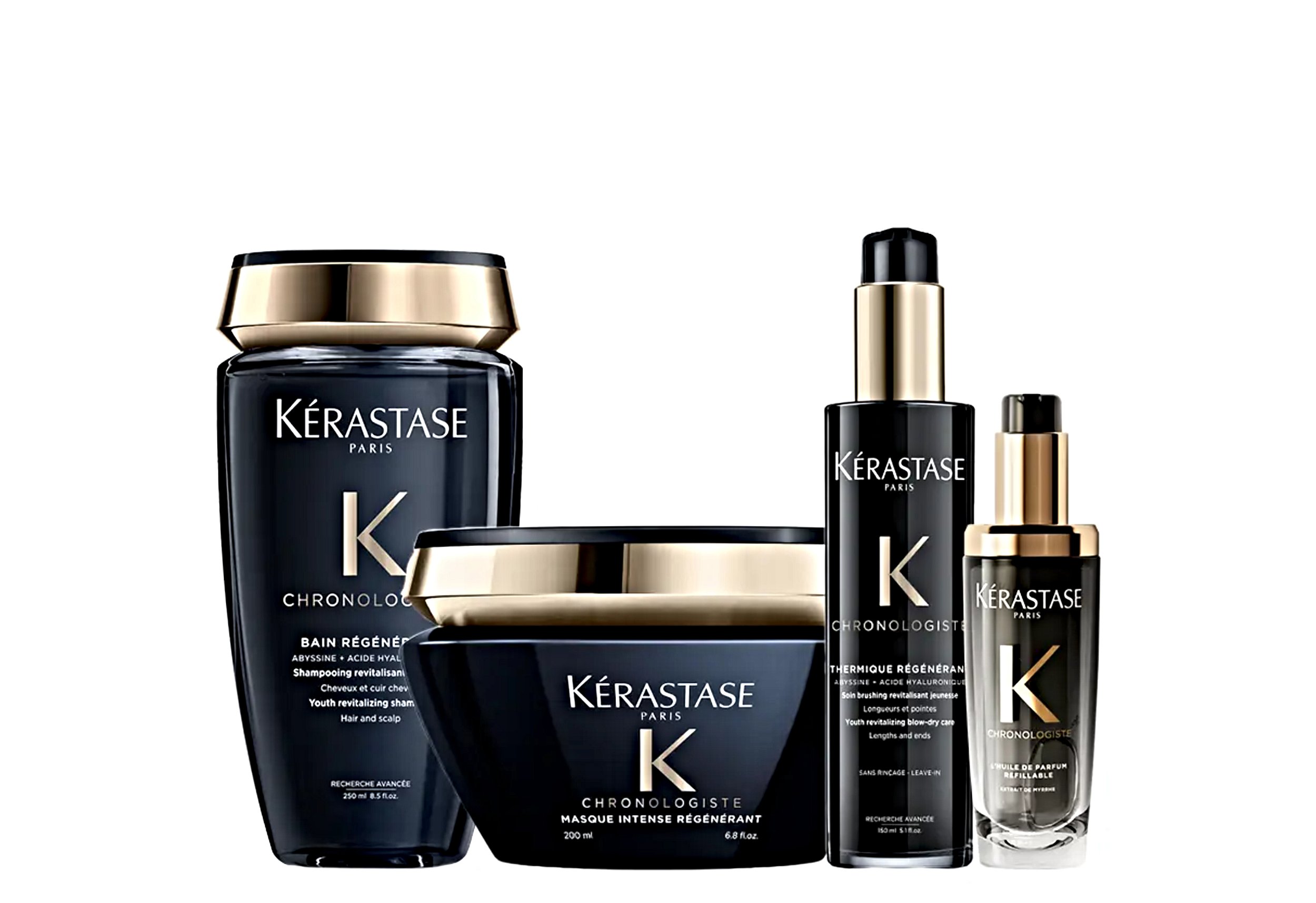 Kit Kérastase Bain Chronologiste Régénérant Shampoo 250ml + Masque Intense Régénérant Máscara 200gr + Chronologiste Thermique Régénérant Leave-in 150ml+ LHuile De Parfum- Sérum 75ml