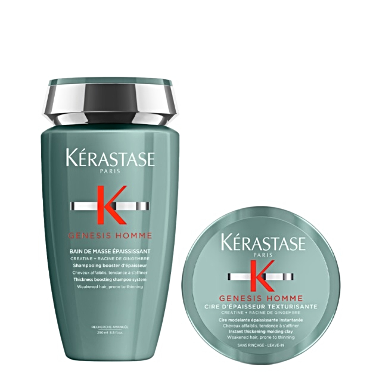 Kit Kérastase Genesis Homme Bain De Masse Shampoo 250ml+ Cire Dépaisseur Pomada Capilar 75ml:
