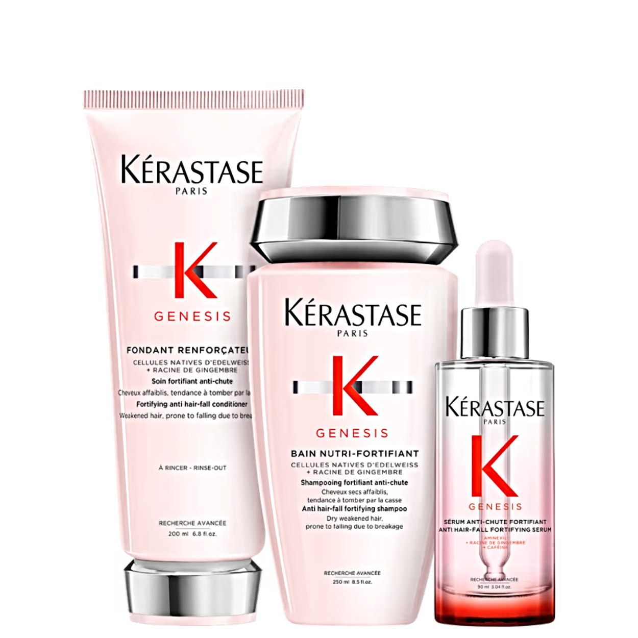 Kit Kérastase Genesis Nutri Fortifiant Shampoo 250ml+ Genesis Fondant Renforçateur Condicionador 200ml+ Anti- Chute Fortifiant Sérum Capilar 90ml