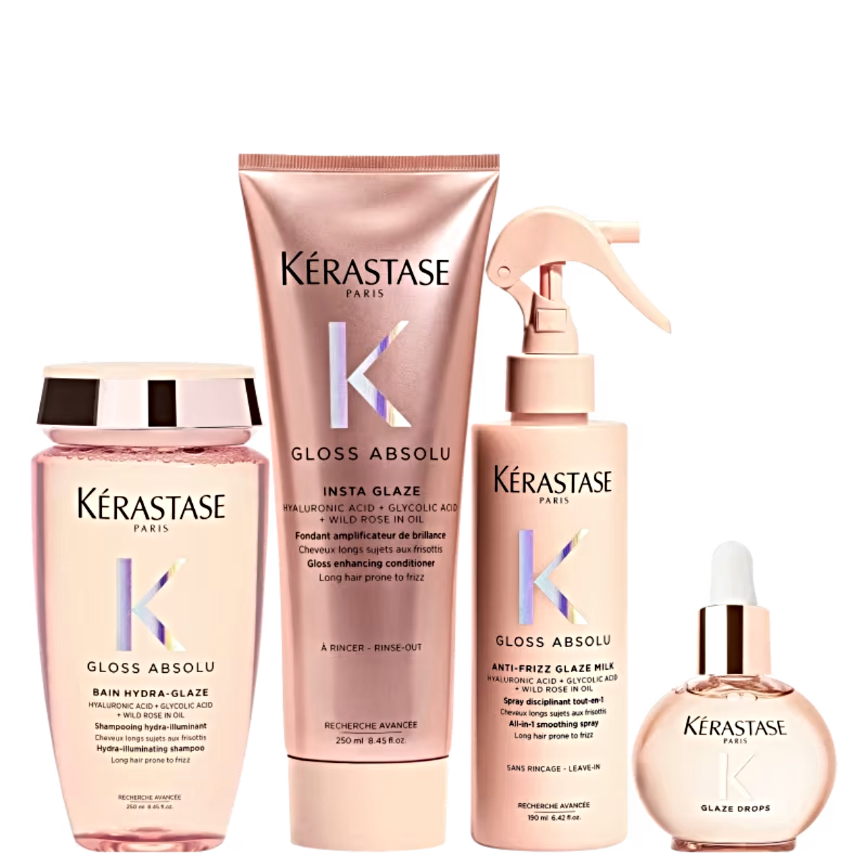 Kit Kérastase Gloss Absolu Shampoo 250ml+ Condicionador 250ml+ Glaze Milk Leave-in Spray 190ml+ Glaze Drops Óleo Capilar 45ml