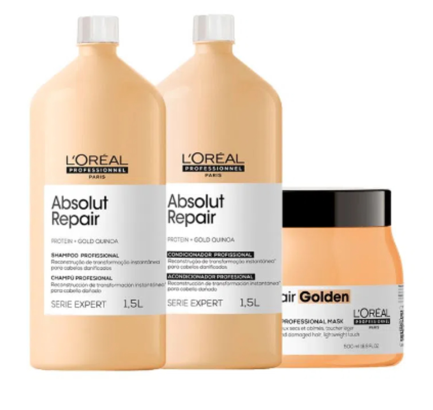 Kit Loreal Absolut Repair Gold Quinoa Shampoo 1500ml+ Condicionador 150ml+ Máscara 500g Lightweight Gd