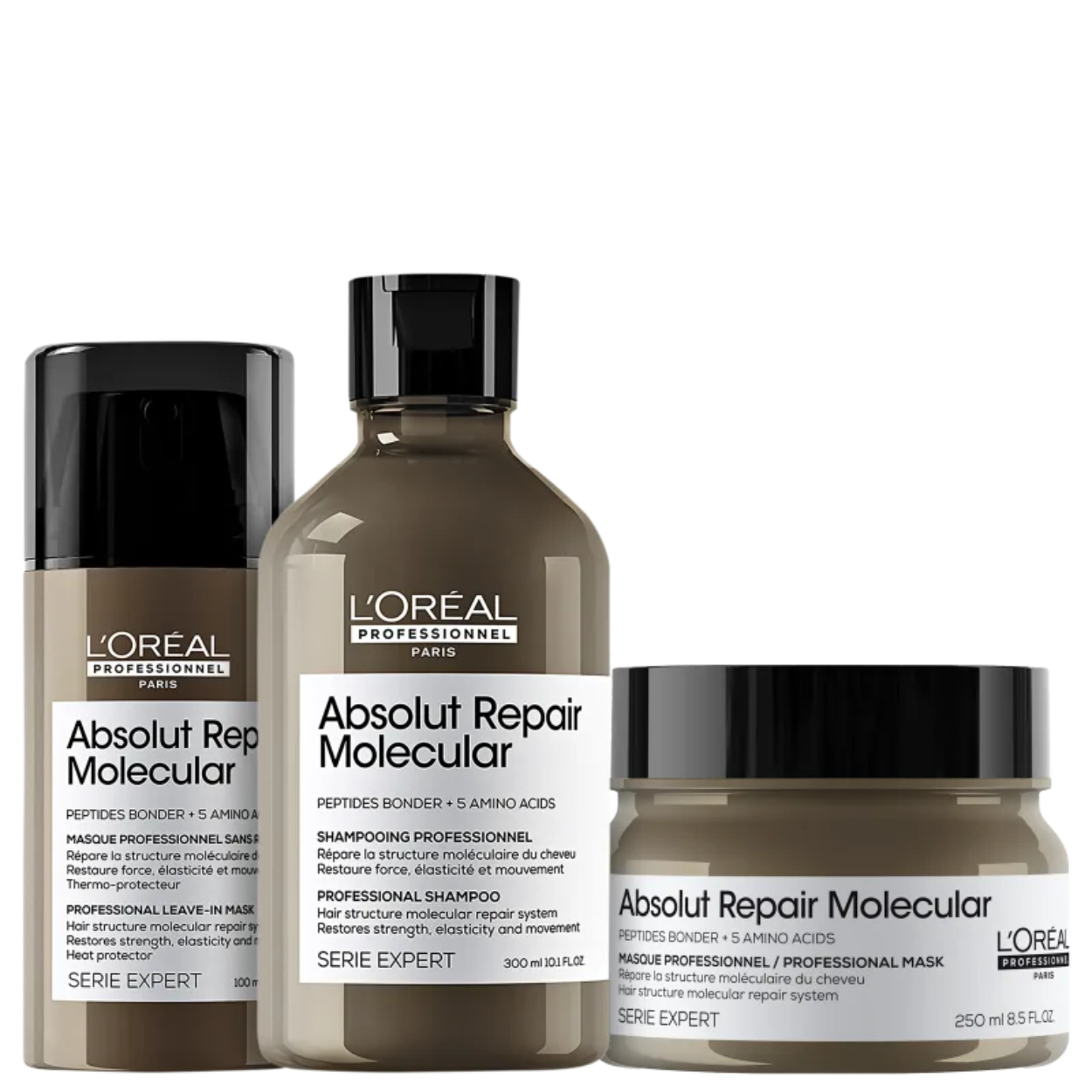 Kit LOréal Professionnel Absolut Repair Molecular Shampoo 300ml + Máscara 250ml + Levae-in 100ml: