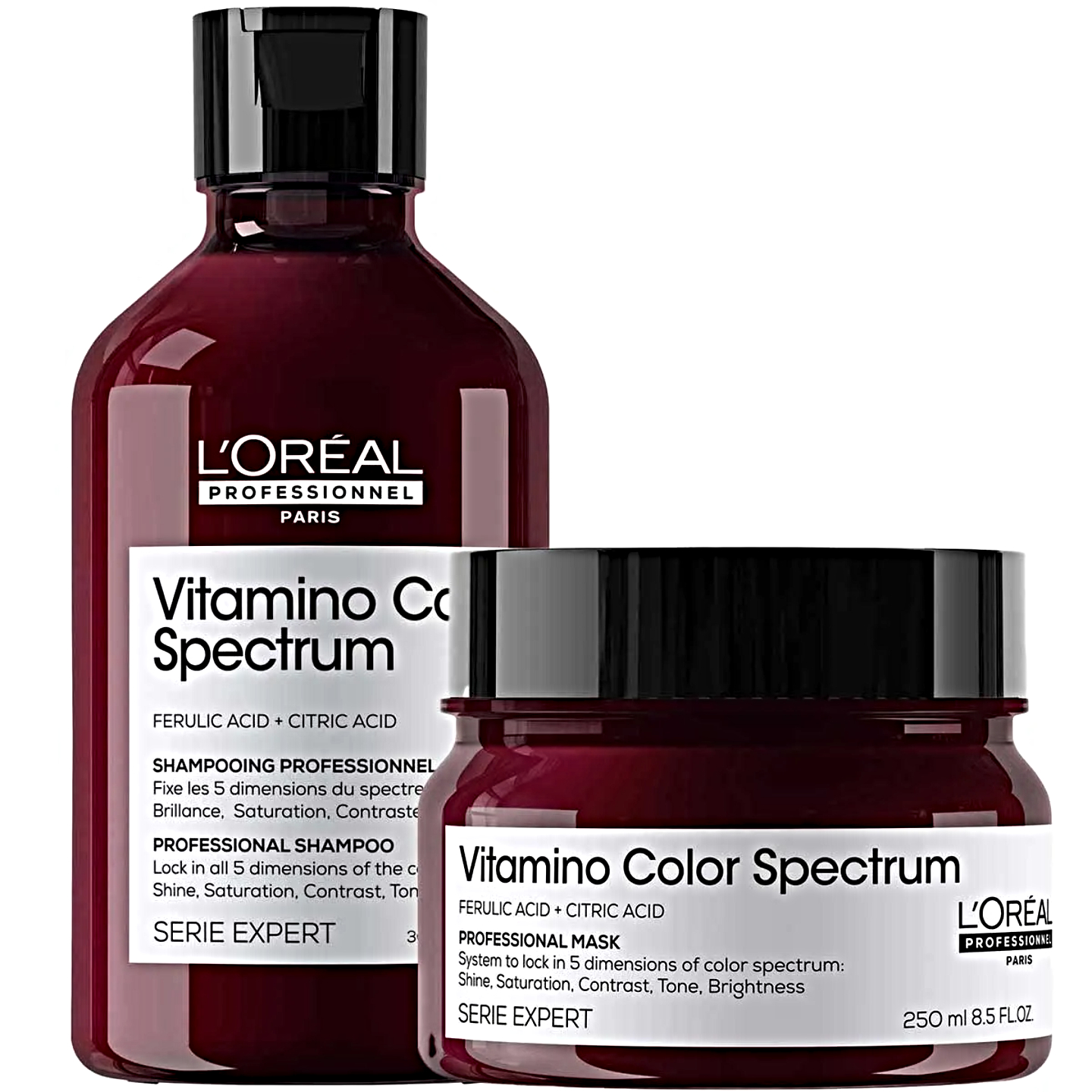 LOréal Professionnel Vitamino Color Spectrum parte da linha Clean Beauty e Vegan, especialmente formulado para cuidar de todos os tipos de cabelos coloridos. Contém uma poderosa combinação de Ácido Ferúlico e Ácido Cítrico, que atuam em sinergia para preservar a intensidade da cor dos fios. Ele é a escolha ideal para quem deseja manter a cor vibrante e luminosa do primeiro dia por até 100 dias.