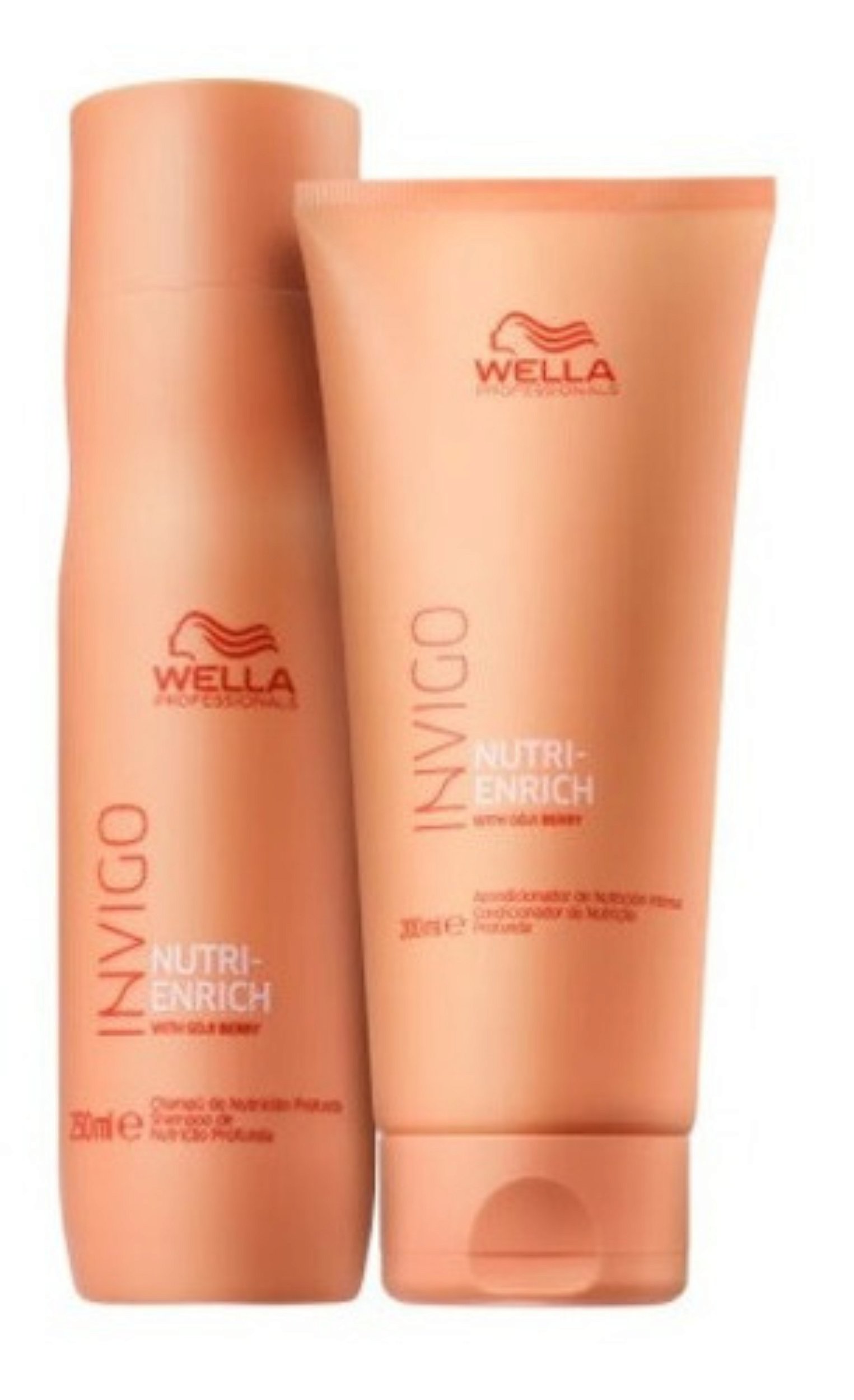 Kit Wella Professionals Nutri Enrich Shampoo 250ml + Condicionador 200ml: Kit para cabelos secos, ressecados ou quimicamente tratados. Hidrata, nutre, aumenta o brilho e suaviza a superfície dos fios. Oferece um cuidado diário que melhora a qualidade do cabelo significativamente. Trabalha tanto na reposição de nutrientes essenciais como na hidratação. Assim, consegue conferir maciez e aspecto saudável enquanto limpa e desembaraça. Componentes: Goji Berry: uma fruta com alta concentração de vitaminas antioxidantes, minerais e peptídeos que melhoram a saúde do cabelo. Ácido Oleico e Pantenol: proporcionam hidratação e nutrição de alta performance. Vitamina E: protege o cabelo de danos futuros.