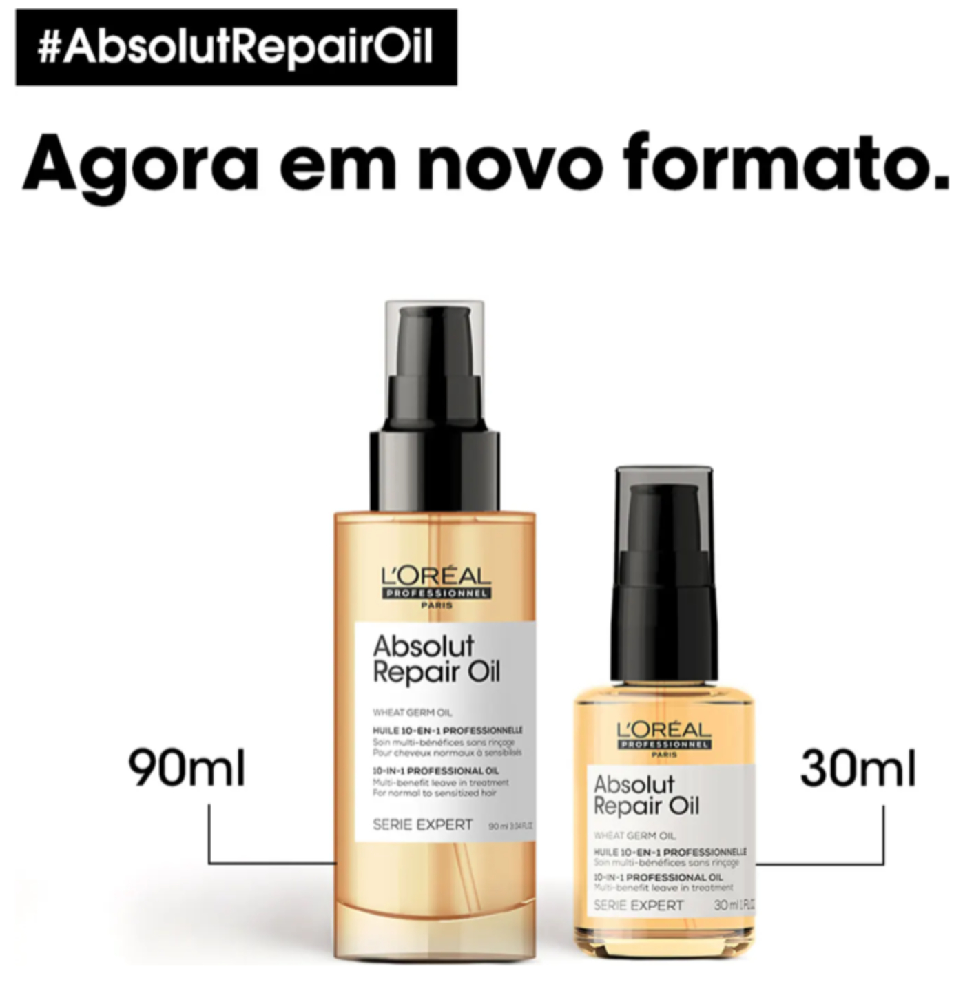 Óleo reparador para cabelos ressecados e danificados. Proporciona 10 benefícios para os fios.
