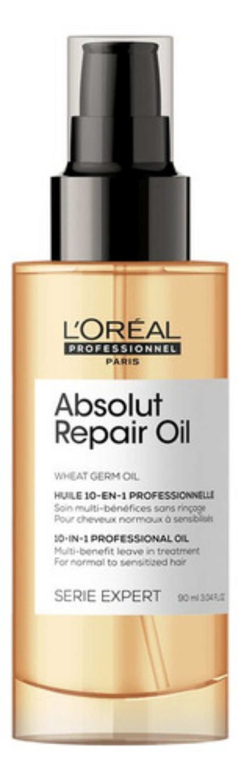LOréal Professionnel Serie Expert Absolut Repair Gold Quinoa 10in1 - Óleo Reparador 90ml: Óleo reparador para cabelos finos, ressecados e danificados. Proporciona 10 benefícios para o cabelo, com resultado de fios nutridos, brilhantes e leves, com toque suave. Graças a sua tecnologia de co-emulsão, suas moléculas são 50% menores que os tradicionais. Com isso, os ingredientes ativos penetram profundamente na fibra, formando um filme fino e homogêneo e aperfeiçoando a superfície do cabelo. Promove 10 benefícios: 1. Nutre o cabelo. 2. Repara a fibra instantaneamente. 3. Deixa os cabelos com um toque leve 4. Deixa os fios mais macios. 5. Desembaraça o cabelo. 6. Condiciona a fibra. 7. Torna o cabelo mais maleável. 8. Adiciona brilho aos fios. 9. Protege a fibra 10. Acalma os cabelos. Composição: Quinoa Dourada e Proteína Hidrolisada de Trigo: criam um filme protetor que mantém as cutículas seladas, retendo as propriedades restauradoras dentro da fibra capilar.