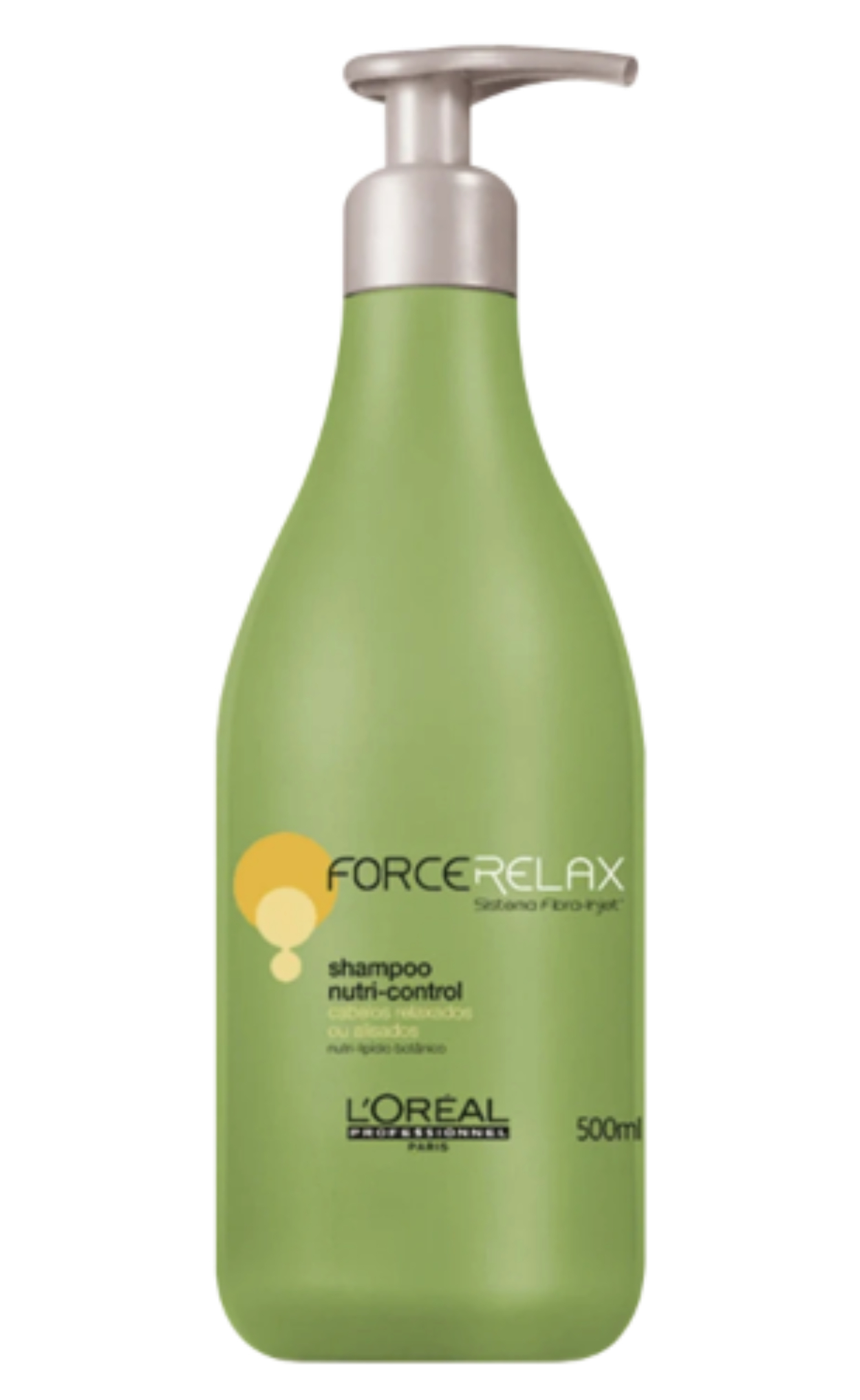 O Shampoo Force Relax 500ml Care Nutri-Control da LOréal Professionnel traz nutrição e controle profundo para cabelos crespos, ondulados e relaxados por guanidina.