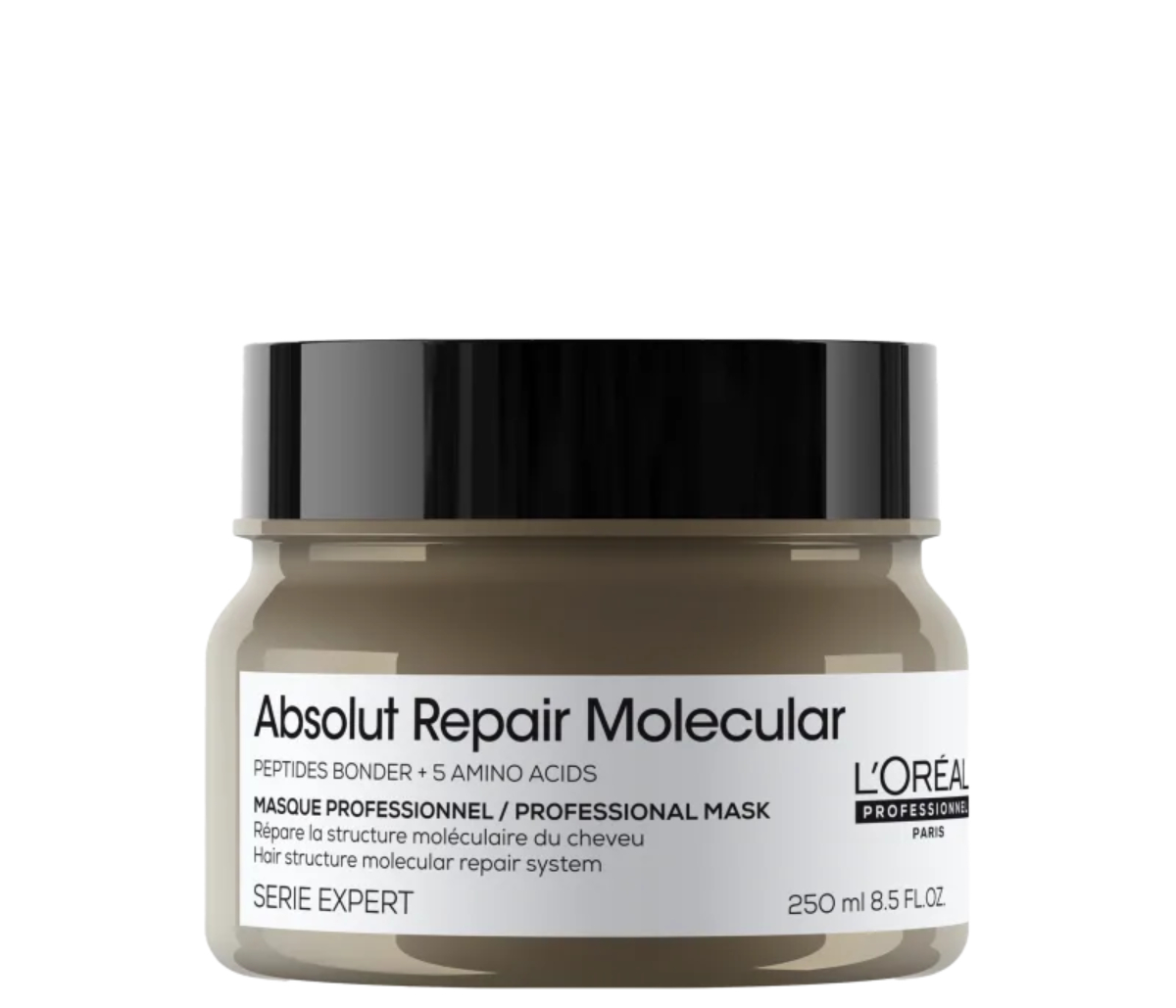 Máscara capilar para cabelos danificados, repara e reconstrói profundamente a estrutura molecular do cabelo. A Máscara Capilar Absolut Repair Molecular possui uma fórmula exclusiva capaz de reparar 2 anos de danos em apenas um uso*. Sua tecnologia patenteada que decompõe os peptídeos, possibilitando a sua penetração na fibra capilar. Uma vez dentro da fibra, os peptídeos reconstroem a estrutura molecular do cabelo, resultando em fios mais fortes, com mais elasticidade, movimento e maciez. Sua textura sedosa e cremosa, penetra instantaneamente na fibra capilar, proporcionando alto nível de cuidado e força, sem pesar.