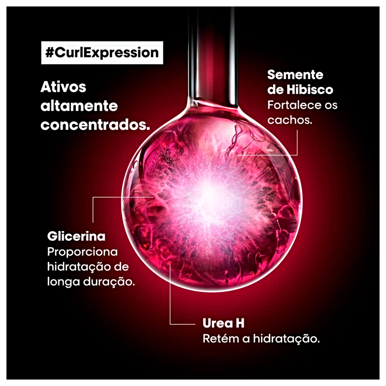 Glicerina 3%: umectante à base de plantas, mantém a água nos fios para uma hidratação de longa duração.