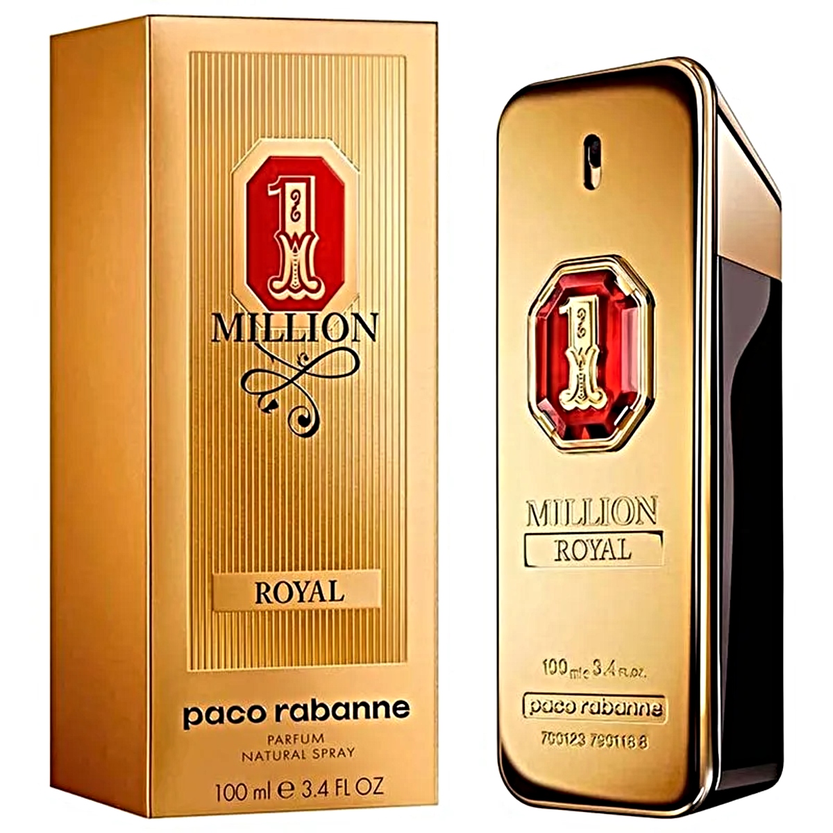 One Million Royal o seu sofisticado frasco dourado é um objeto de desejo a parte. De textura lisa e polida remete claramente a uma barra de ouro, possui gravado One Million em uma tipografia que remete aos tempos do velho oeste, representando poder, durabilidade e luxo. Ele também reflete a fragrância de um homem poderoso, moderno e competitivo.