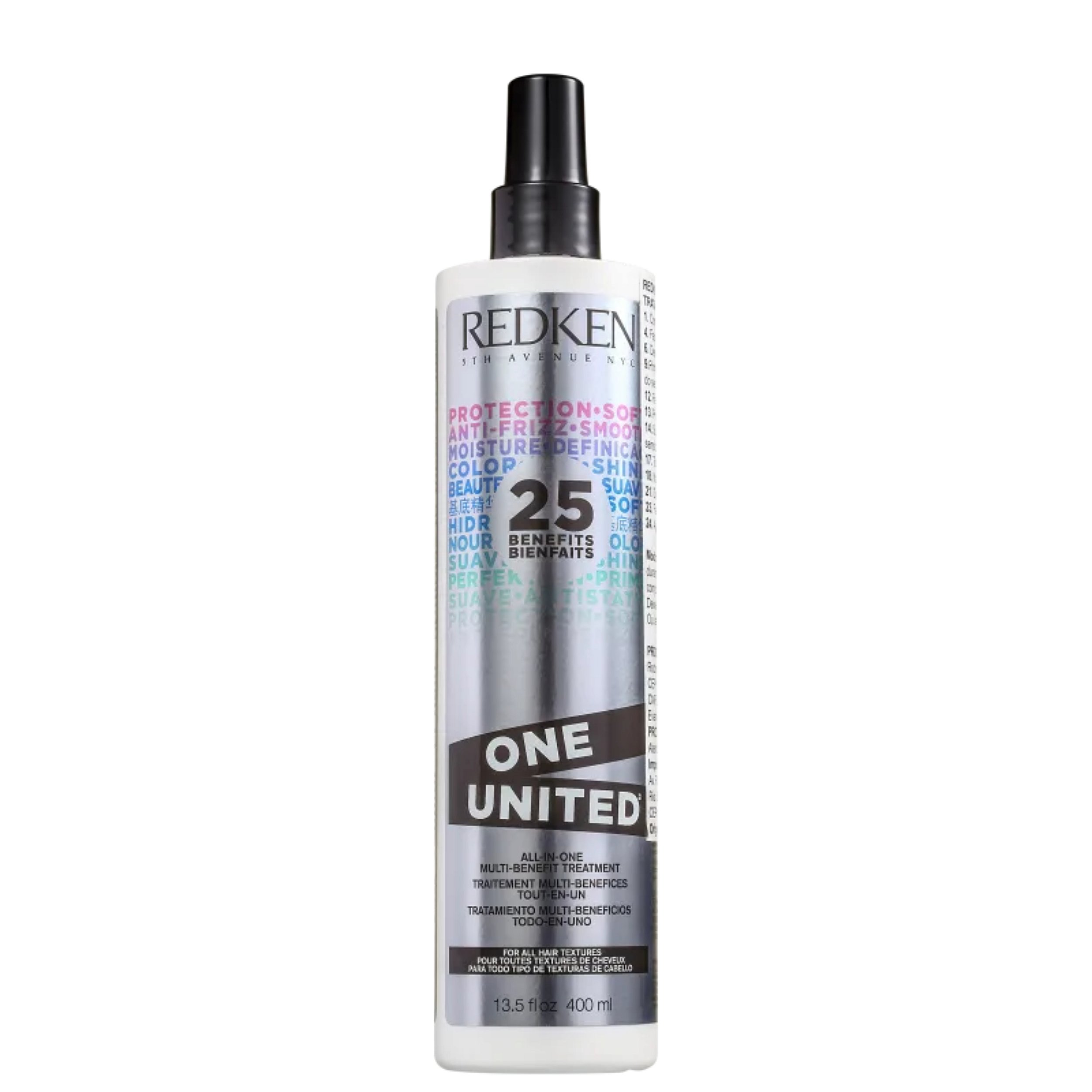 Tratamento Multibenefícios para todos os tipos de cabelo. Redken One United 25 Benefits oferece, como o nome mesmo diz, 25 benefícios instantâneos para fios macios, com brilho, protegidos do calor térmico, sem frizz e com efeito duradouro.
